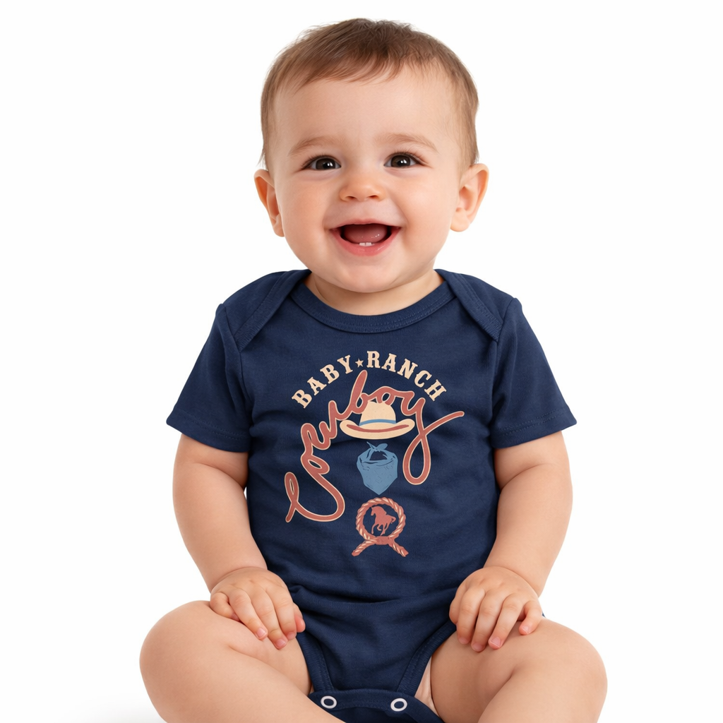 Os bodies de manga curta Western Baby Ranch são peças encantadoras, perfeitas para os pequenos cowboys e cowgirls modernos! Feitos com materiais de alta qualidade, esses bodies são tanto confortáveis quanto estilosos. Aqui está uma descrição detalhada: