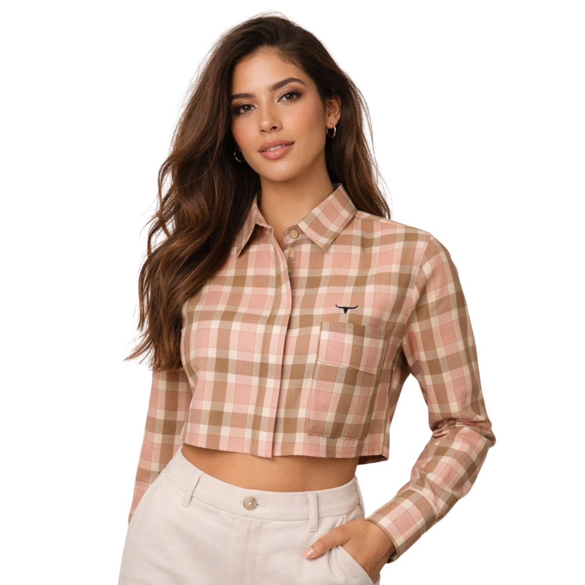 A Camisa Cropped Manga Longa Moiadeiros une estilo, autenticidade e conforto em uma peça moderna e cheia de personalidade. Com modelagem cropped que valoriza a silhueta, ela traz um visual atual sem abrir mão da elegância clássica da camisa.