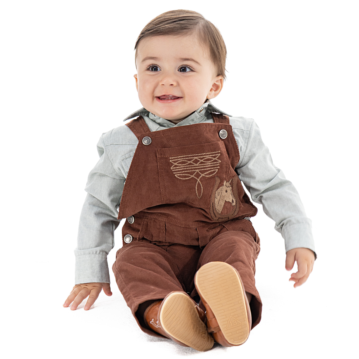 MACACAO BABY MENINO EM TECIDO VELUDO COTELE NA COR MARROM.